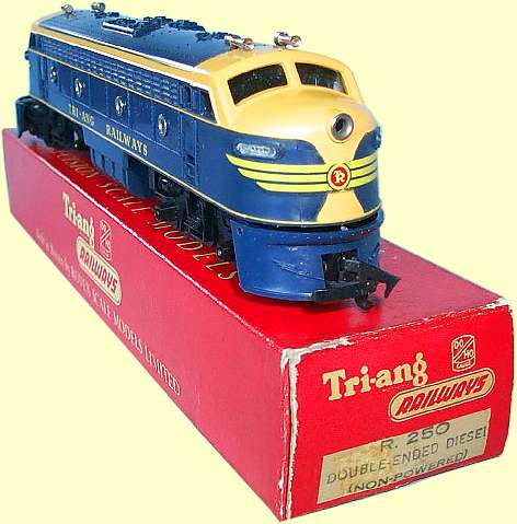 Dummy (non powered) version, note the close spacing of the words "Tri-ang Railways" compared with the previous model. Also the blue under-frame box.