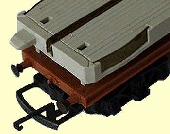 End of wagon showing contacts for power connection to Minic loading ramp to allow vehicles to be driven on.
