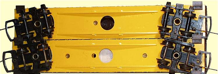 Older model at top. Metal Bogies as opposed to Plastic, no seating unit. Two extra roof fixing holes on later model