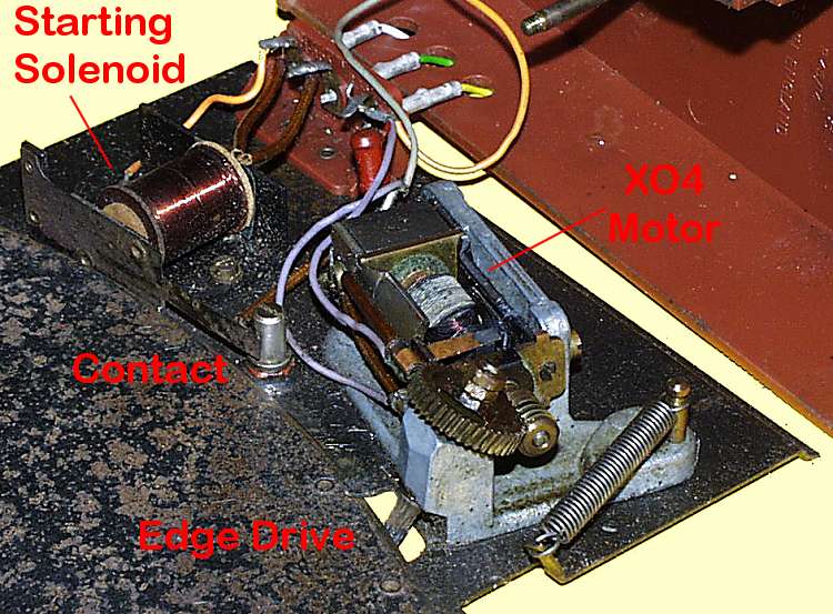 Turntable Drive mechanism, Solenoid operated from T/T switch makes the contact which applies power to  the XO4 motor driving the Turntable plate round.