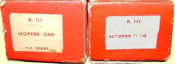 Boxes for two green Hopper Cars, one carries an unusual designation of Hopper Wagon.
