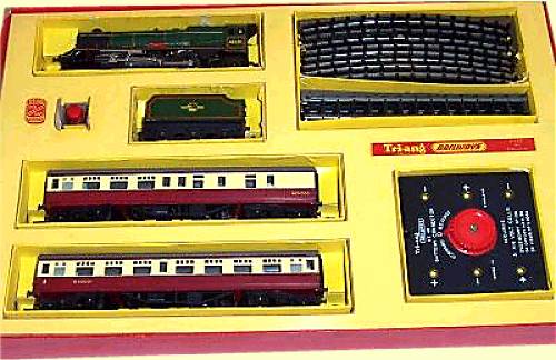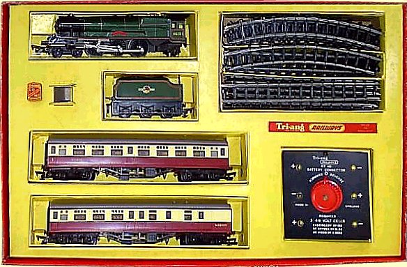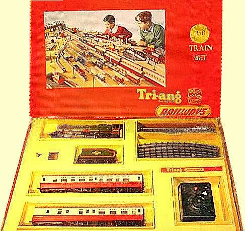 The R3B Set was introduced in 1958 with a Green Princess locomotive and tender, 2 BR 9" coaches R28 and R29. 12 curves, 6 straights and a R42 controller. (It was changed to a RT40 battery controller in its later life)