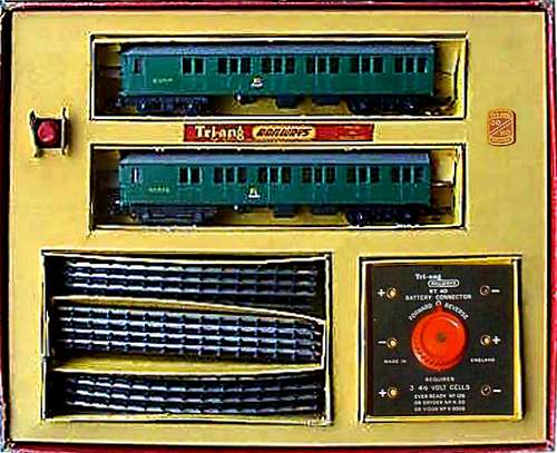The R3F Set was introduced in 1958 and contained an EMU power and dummy car. 12 curves, 2 straights and a RT40 battery controller.