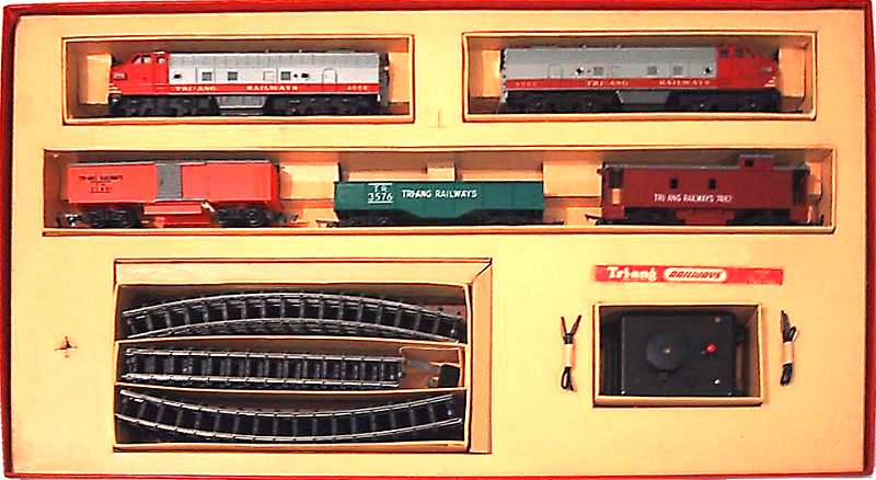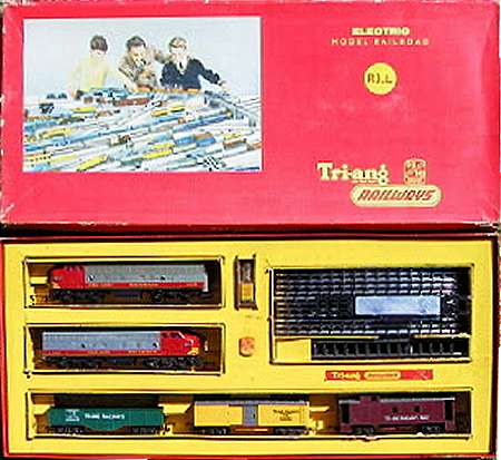 The R3L Set was introduced in 1959 and contained B-B Diesel, R55 and R 57, three freight cars, R114, R115 and R116. 12 curves, 6 straights.