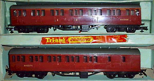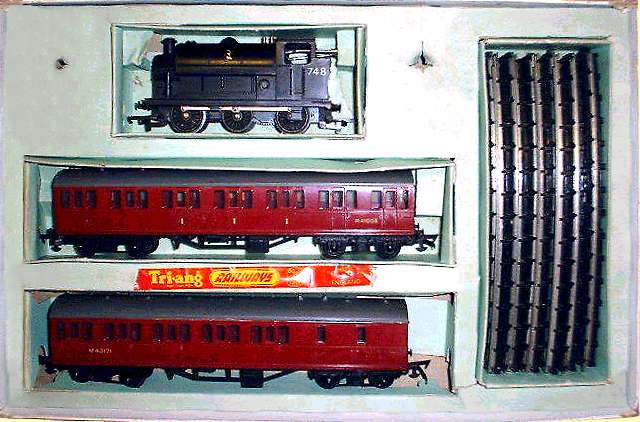 The R3P Set was introduced in 1958 and contained a R151 Clockwork saddle tank, two maroon coaches, R120, R121 and 12 curves.