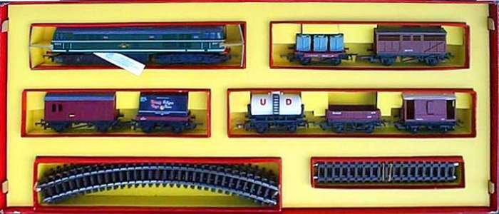 The RS.51 Set was introduced in 1964 and contained an A1A Brush Diesel and seven wagons. R15, R16, R113, R122, R340 and R561. 8 double curves, 4 straights.