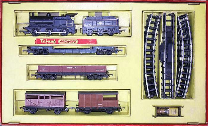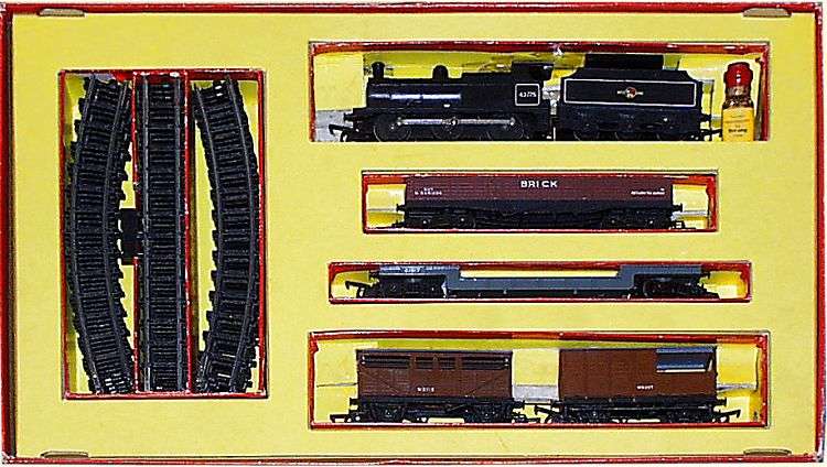 The RS.5 Set was introduced in 1960 and contained a Deeley 0-6-0 3F tender engine, four wagons R118, R 122, R124 and R219. Series 3 track, 12 curves, 2 straights.