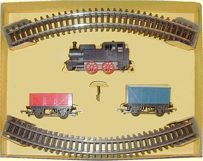 The RS.70 Set was introduced in 1964 with a Clockwork 0-4-0 Tank engine R660 and 2 wagons R10 and R14. 8 double curves.