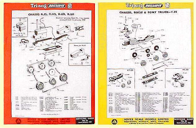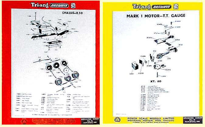 Tri-ang issued Service Sheets which contained exploded views of motors, chassis, working accessories etc. Each sheet included a full parts list of the items on the sheet. Some sheets were devoted to General spare items e.g. Crossing Gates, power leads etc.